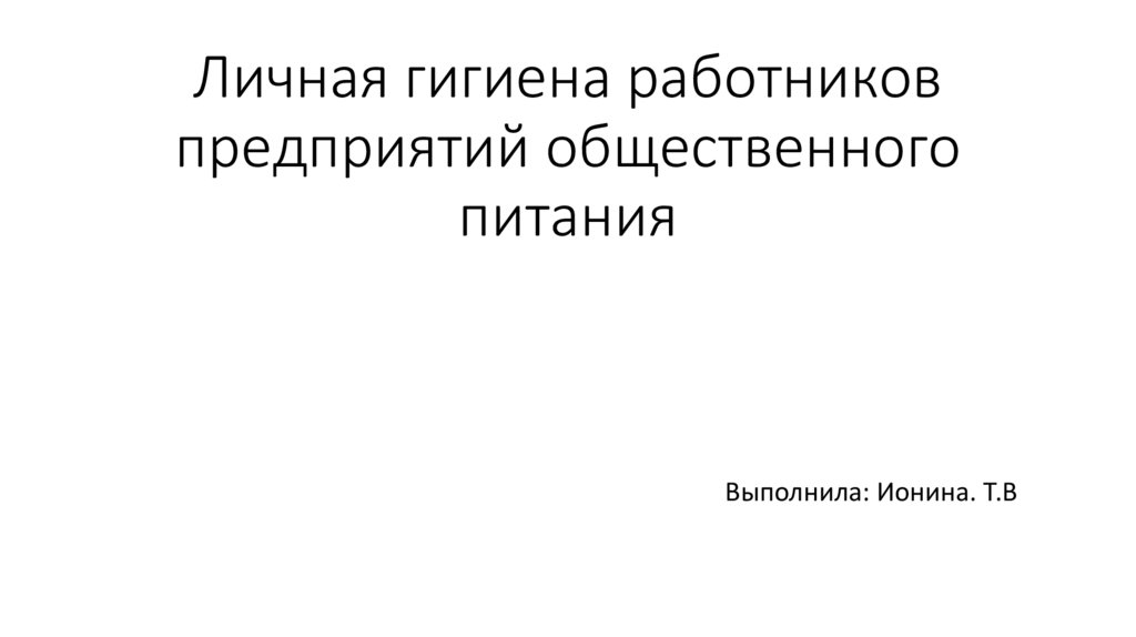 Гигиена и санитария на предприятия общественного питания. Личная гигиена
