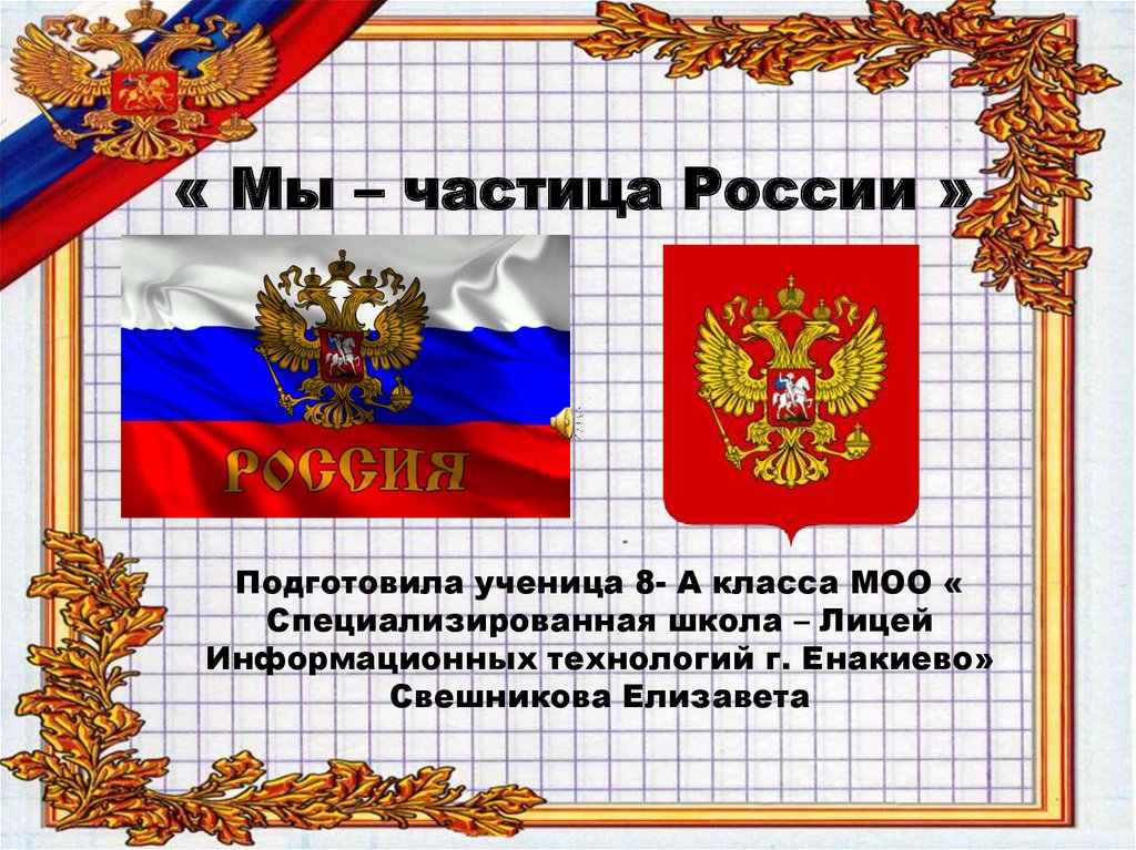 « Мы – частица России »Подготовила ученица 8- А класса МОО «