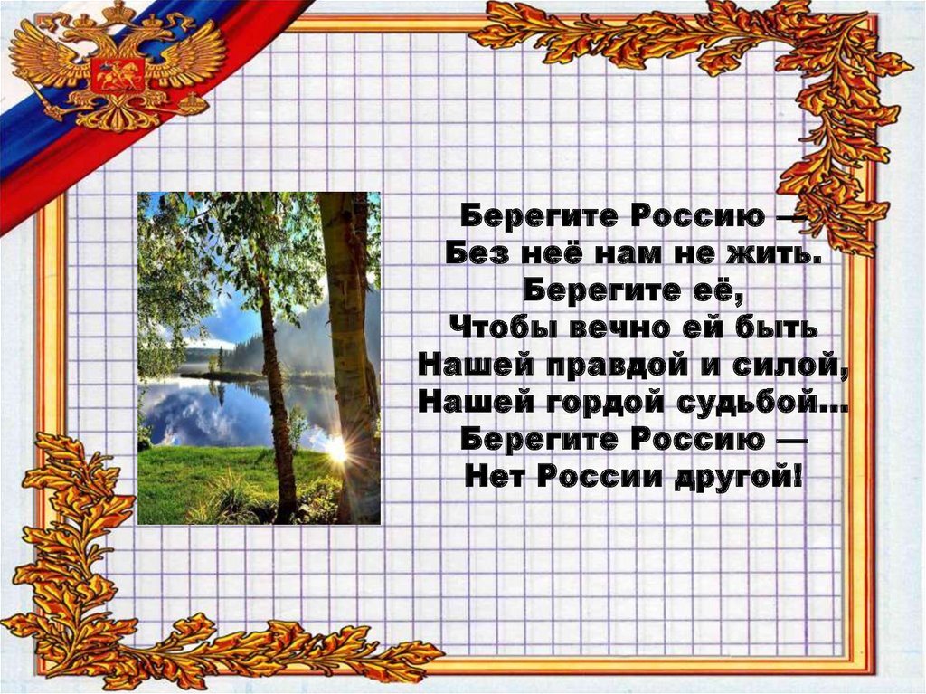 Берегите Россию —Без неё нам не жить.