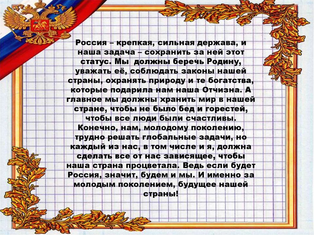 статус. Мы должны беречь Родину,