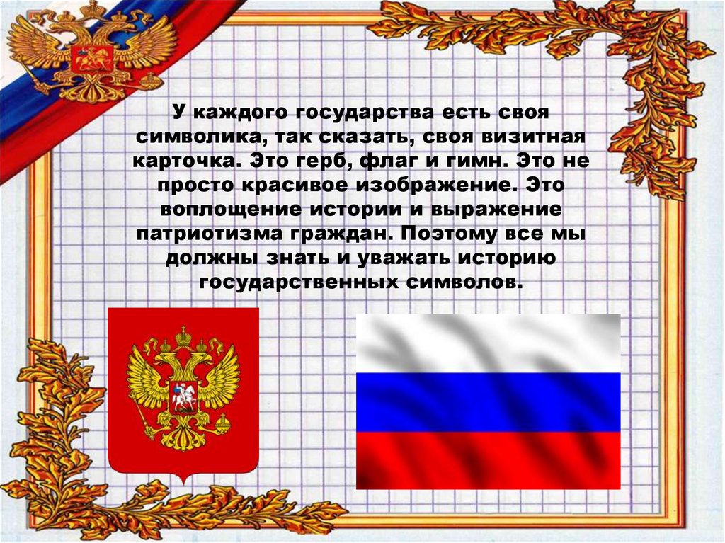У каждого государства есть своясимволика, так сказать, своя визитная