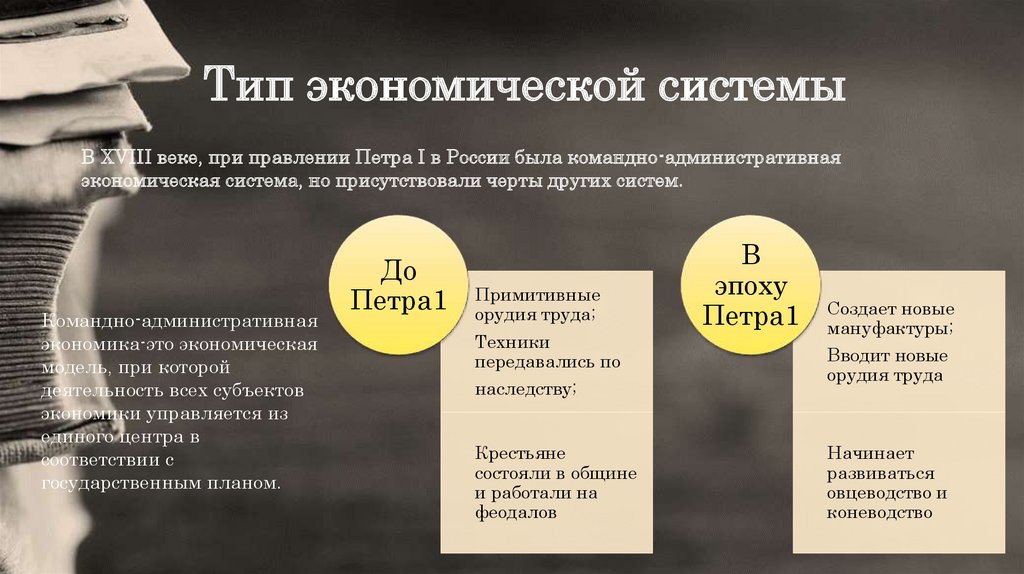 Тип экономической системыВ XVIII веке, при правлении Петра I в России была командно-административная