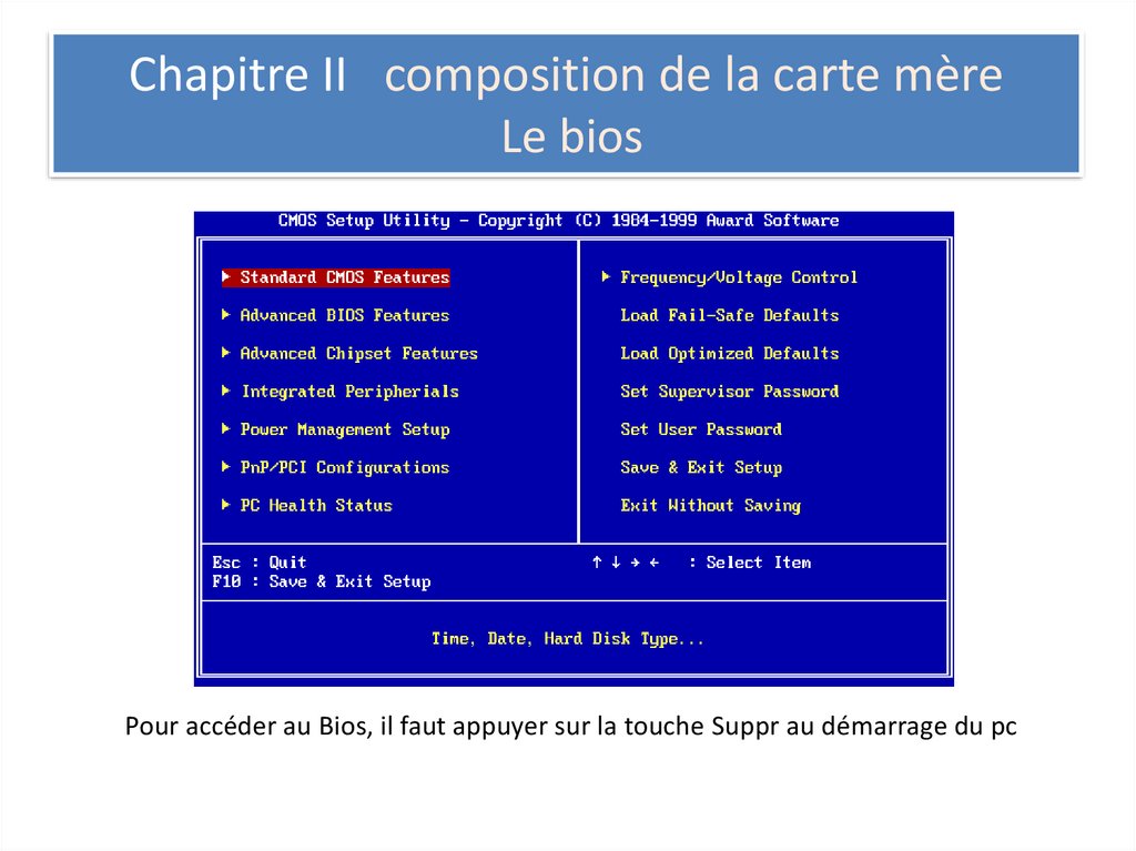 Pour accéder au Bios, il faut appuyer sur la touche Suppr au démarrage du pc