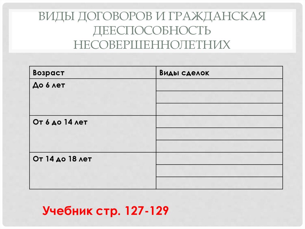 ВИДЫ ДОГОВОРОВ И ГРАЖДАНСКАЯДЕЕСПОСОБНОСТЬ