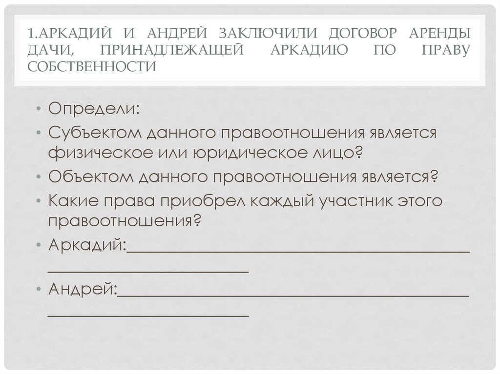 1.АРКАДИЙ И АНДРЕЙ ЗАКЛЮЧИЛИ ДОГОВОР АРЕНДЫДАЧИ,