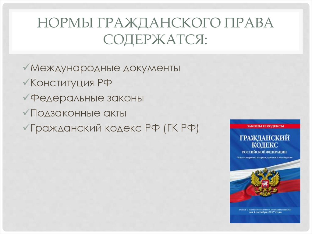 НОРМЫ ГРАЖДАНСКОГО ПРАВАСОДЕРЖАТСЯ: