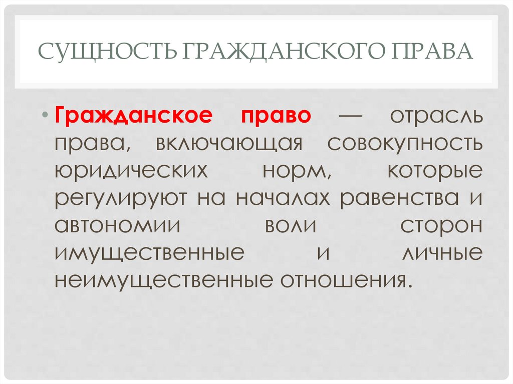 СУЩНОСТЬ ГРАЖДАНСКОГО ПРАВА• Гражданское право — отрасль