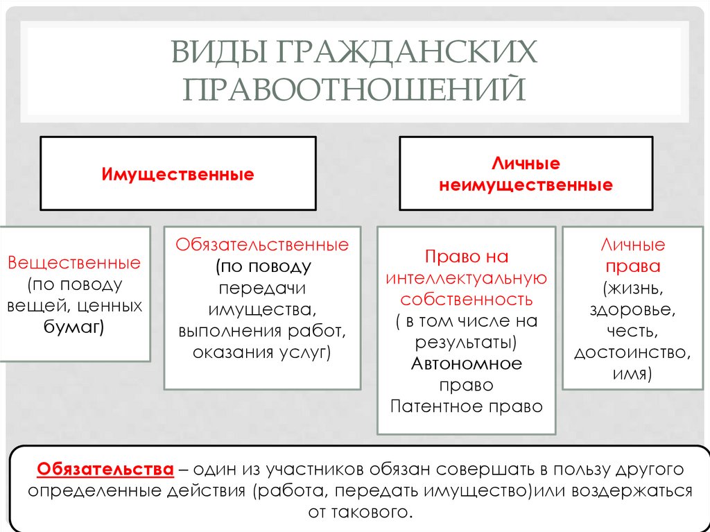 ВИДЫ ГРАЖДАНСКИХПРАВООТНОШЕНИЙ