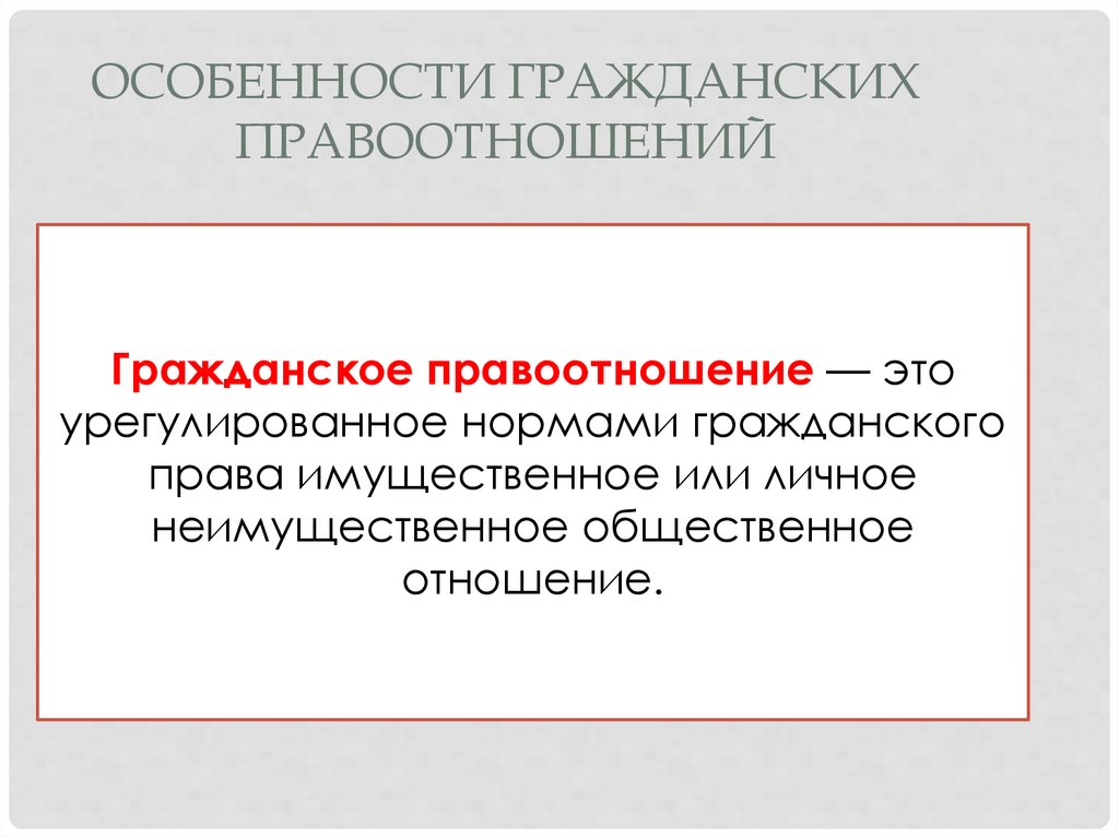 ОСОБЕННОСТИ ГРАЖДАНСКИХПРАВООТНОШЕНИЙ
