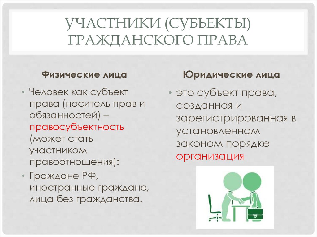 УЧАСТНИКИ (СУБЬЕКТЫ)ГРАЖДАНСКОГО ПРАВА