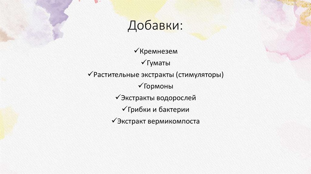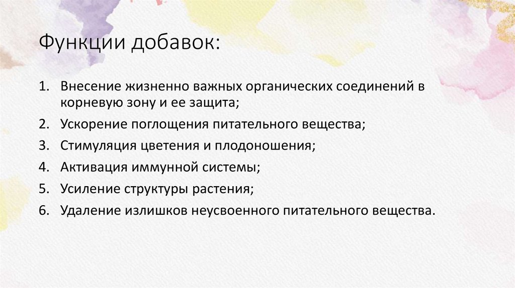 Функции добавок:1. Внесение жизненно важных органических соединений в