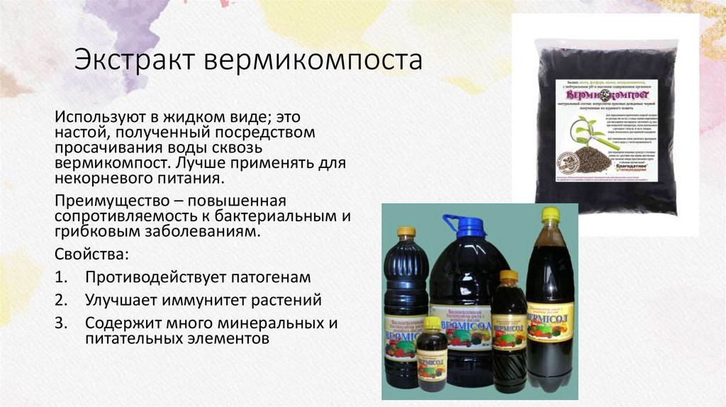 Экстракт вермикомпостаИспользуют в жидком виде; это