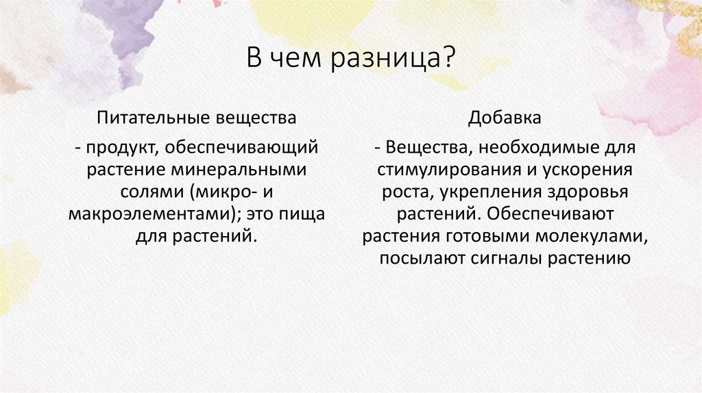В чем разница?Питательные вещества
