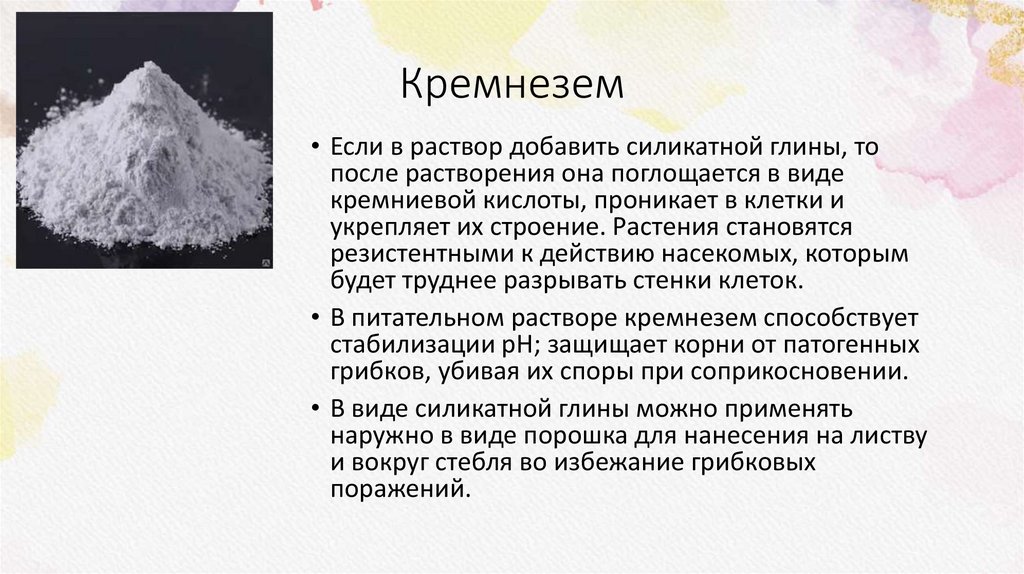 • В питательном растворе кремнезем способствует