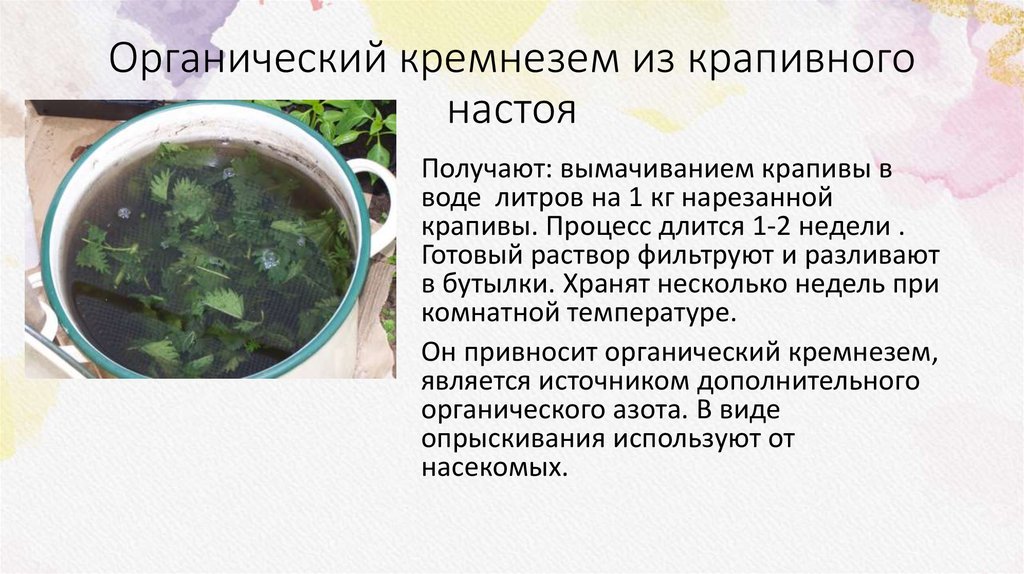 Получают: вымачиванием крапивы в