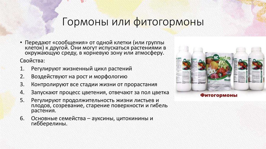 Гормоны или фитогормоны• Передают «сообщения» от одной клетки (или группы