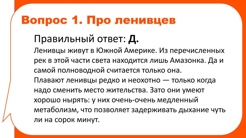 Вопрос 1. Про ленивцевНо когда-то ленивцы