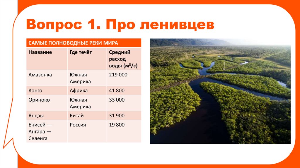 Вопрос 1. Про ленивцевСАМЫЕ ПОЛНОВОДНЫЕ РЕКИ МИРА