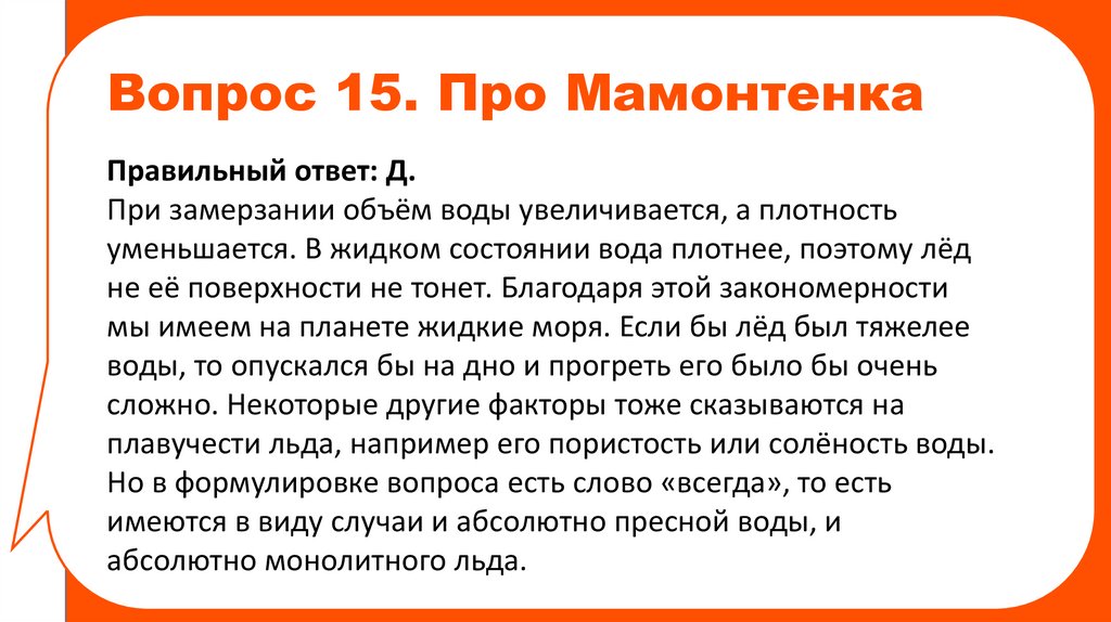 Вопрос 15. Про МамонтенкаПравильный ответ: Д.