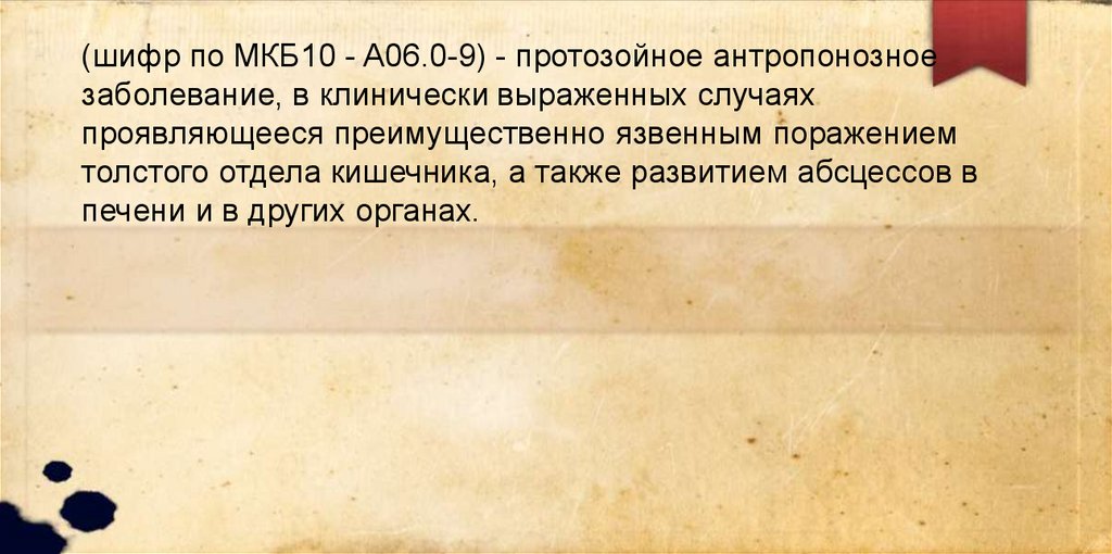 (шифр по МКБ10 - A06.0-9) - протозойное антропонозноезаболевание, в клинически выраженных случаях