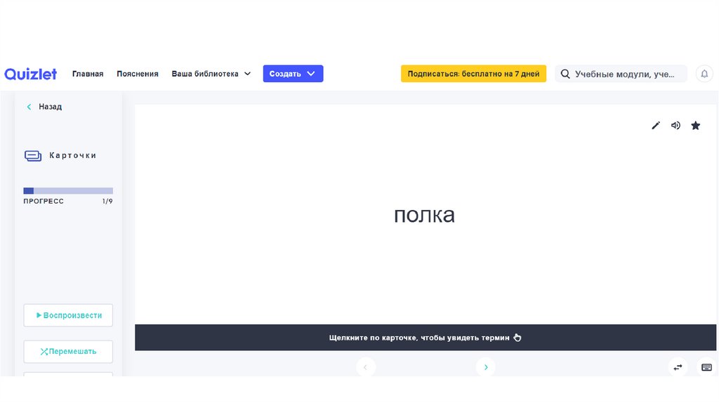 Перейдите по ссылке. Слова по теме: Кухня.Нажмите на поле «Карточки».