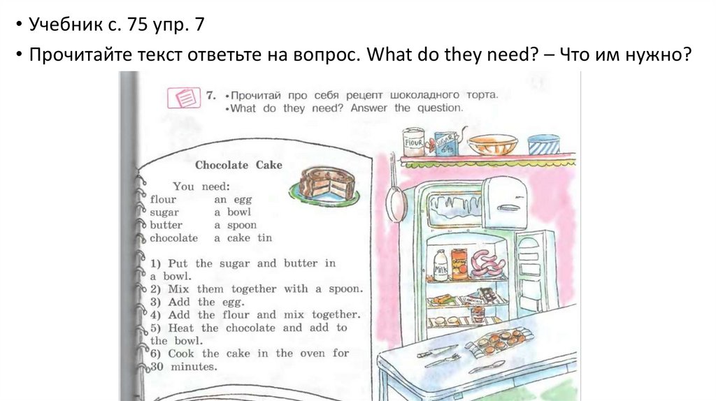 • Учебник с. 75 упр. 7• Прочитайте текст ответьте на вопрос. What do they need? – Что им нужно?