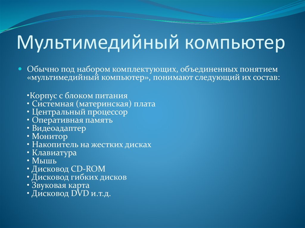 «мультимедийный компьютер», понимают следующий их состав: