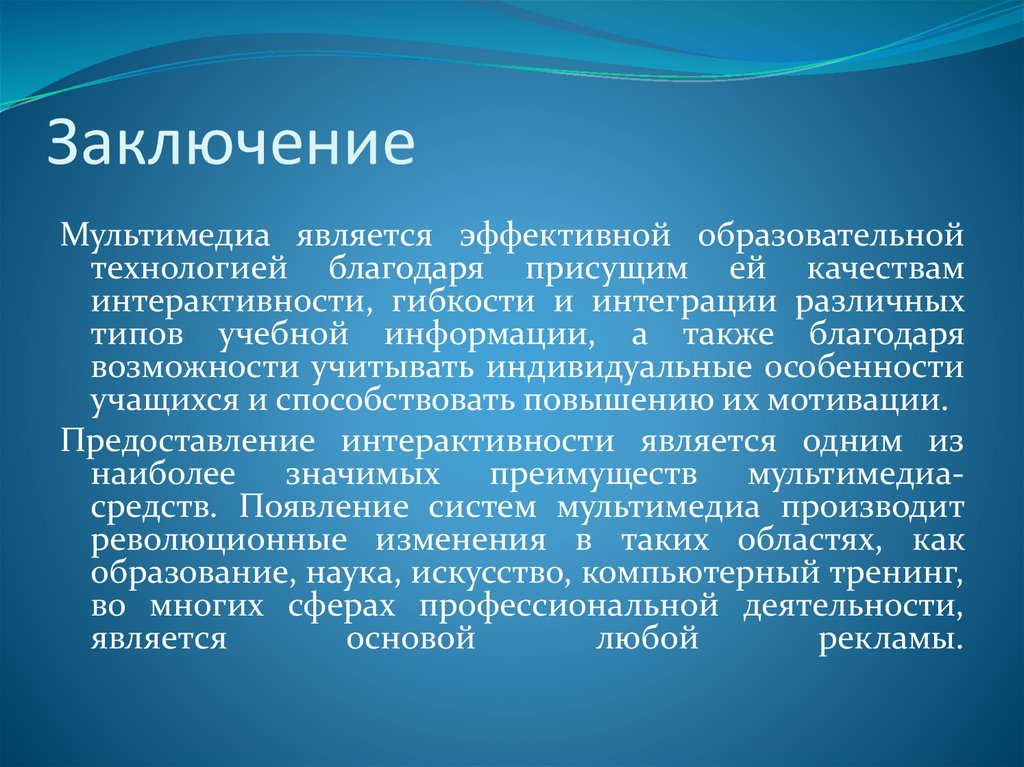ЗаключениеМультимедиа является эффективной образовательной