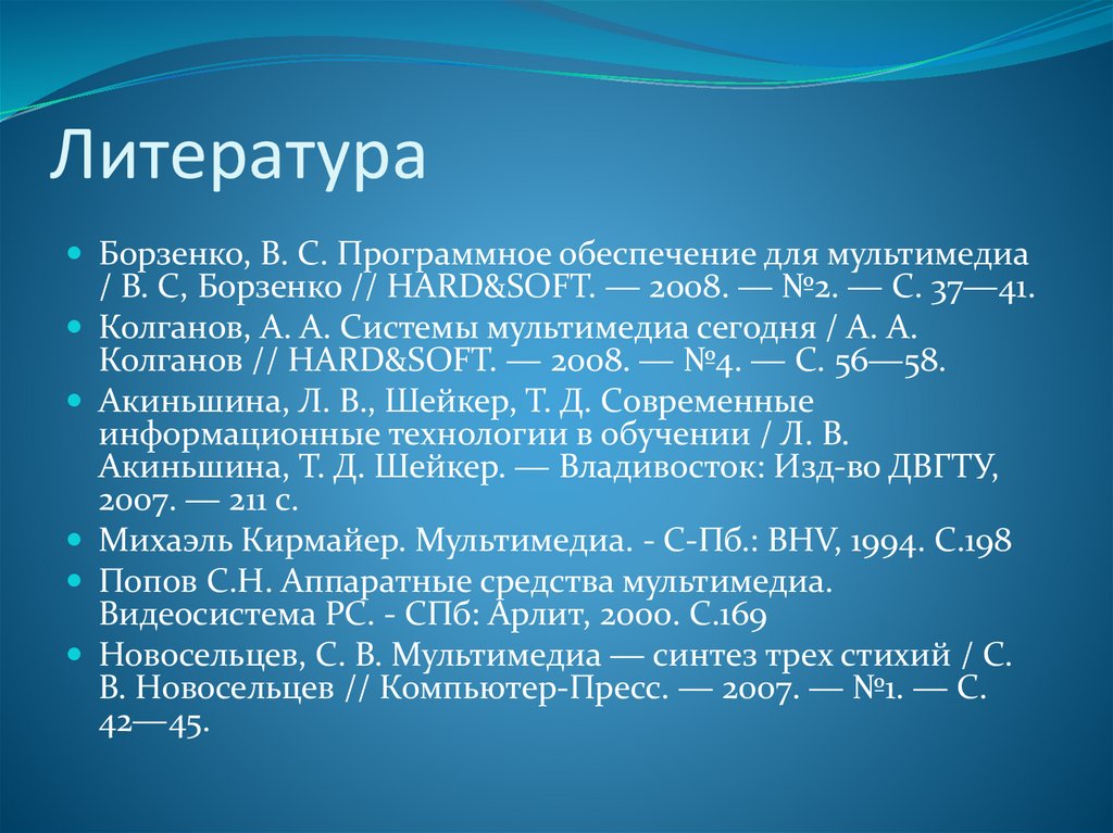 ЛитератураБорзенко, В. С. Программное обеспечение для мультимедиа