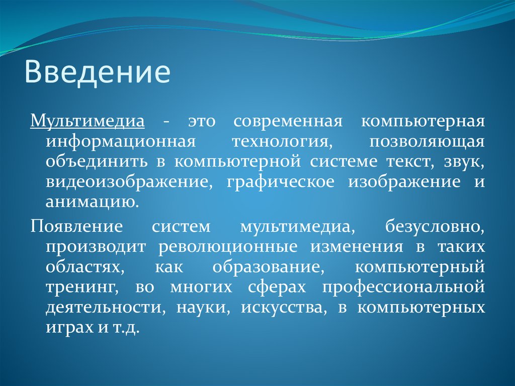 ВведениеМультимедиа - это современная компьютерная