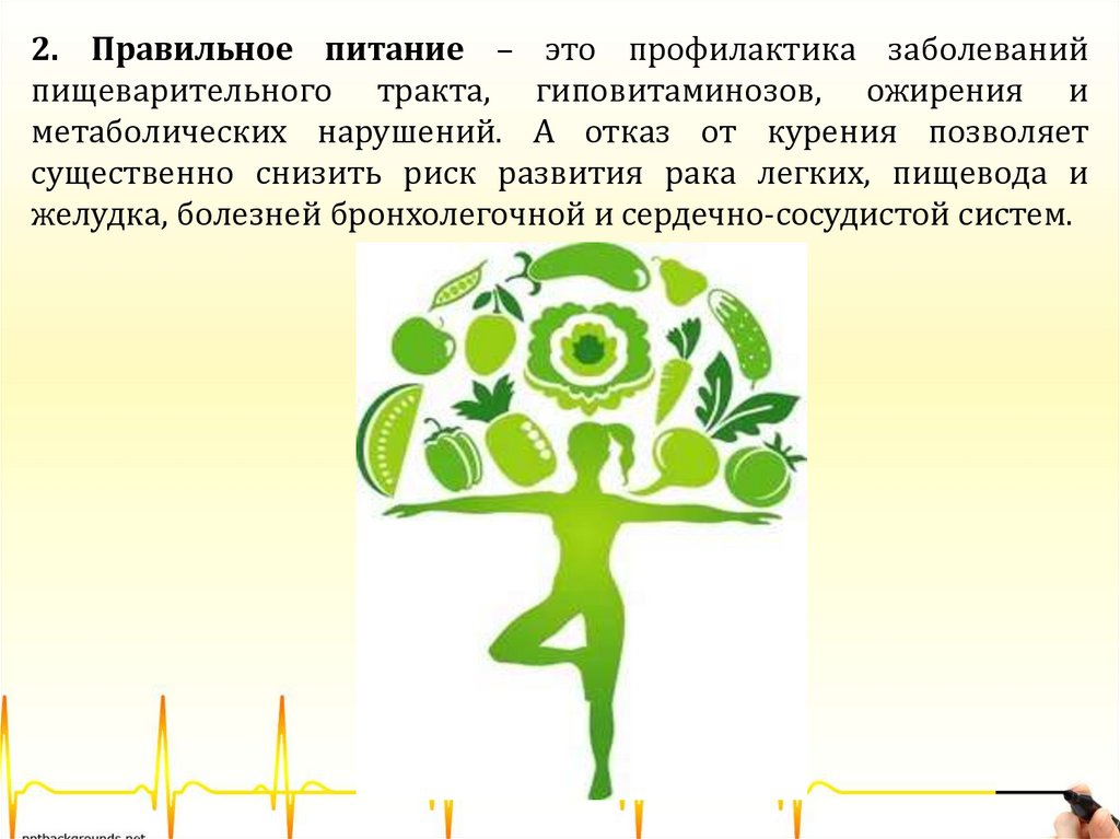 2. Правильное питание – это профилактика заболеванийпищеварительного тракта, гиповитаминозов, ожирения и