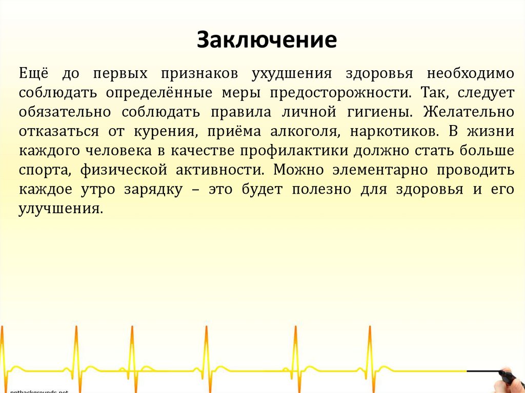 ЗаключениеЕщё до первых признаков ухудшения здоровья необходимо
