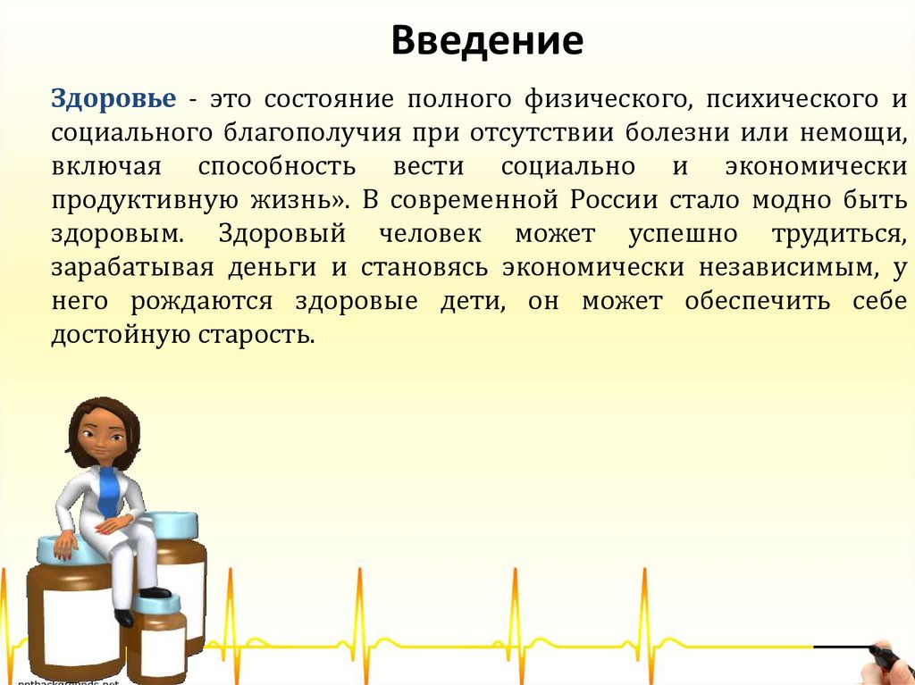ВведениеЗдоровье - это состояние полного физического, психического и