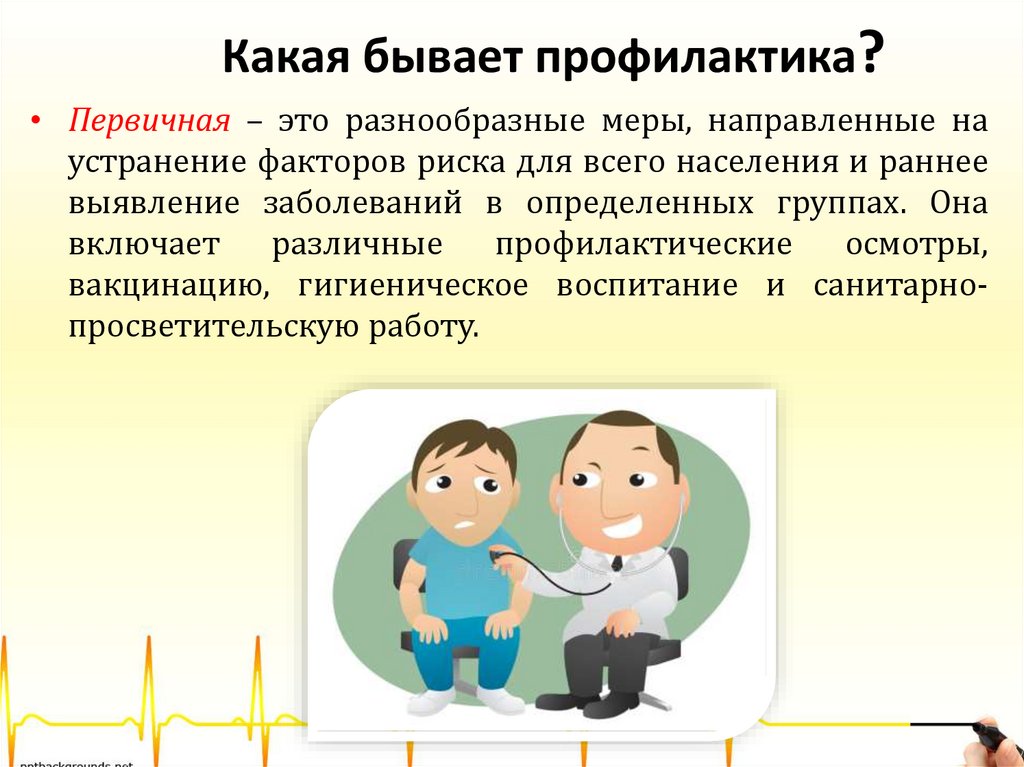 Какая бывает профилактика?• Первичная – это разнообразные меры, направленные на