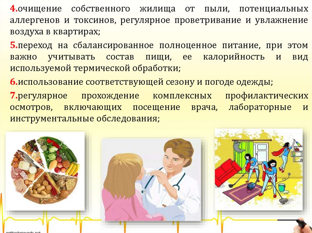 4.очищение собственного жилища от пыли, потенциальныхаллергенов и токсинов, регулярное проветривание и увлажнение
