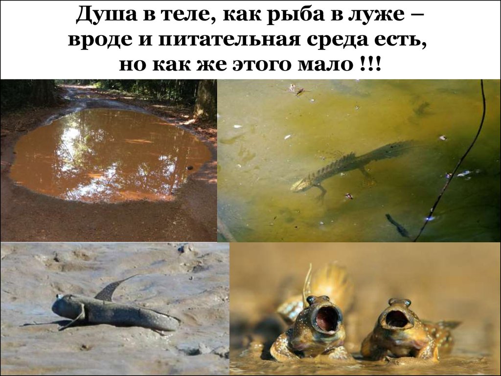 Душа в теле, как рыба в луже –вроде и питательная среда есть,
