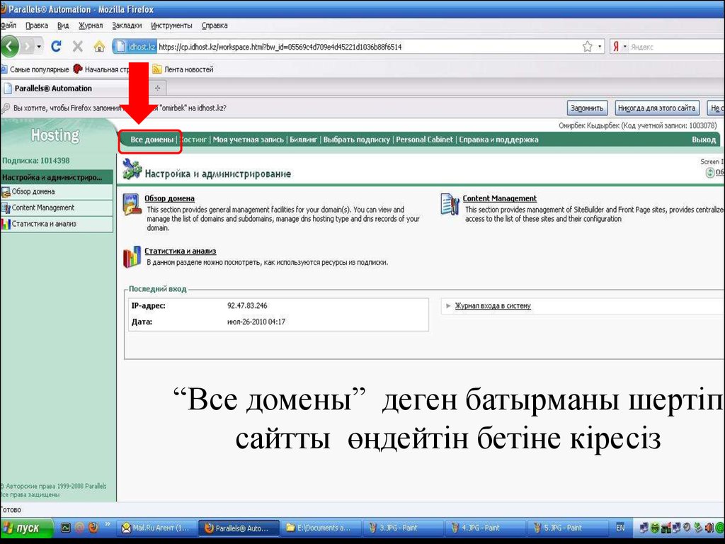 “Все домены” деген батырманы шертіпсайтты өңдейтін бетіне кіресіз