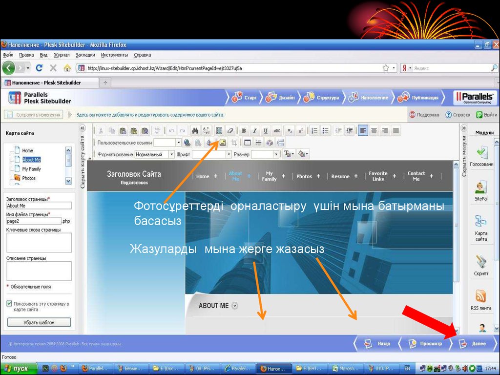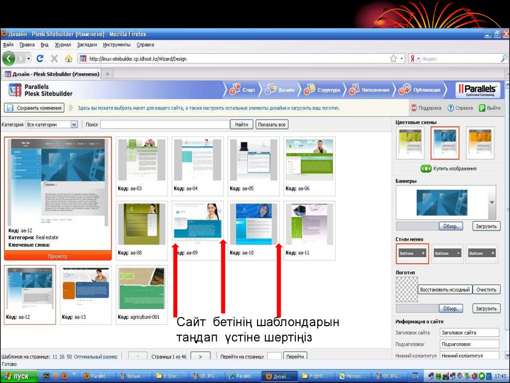 Сайт бетінің шаблондарынтаңдап үстіне шертіңіз