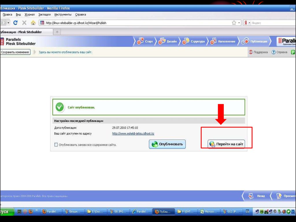 Сайттың аты қабылданғаннан кейін осы бет шығады9. Тіркеуден өткеннен кейін, өз сайтыңыздың бірінші бетіне қайта кіріп қараңыз