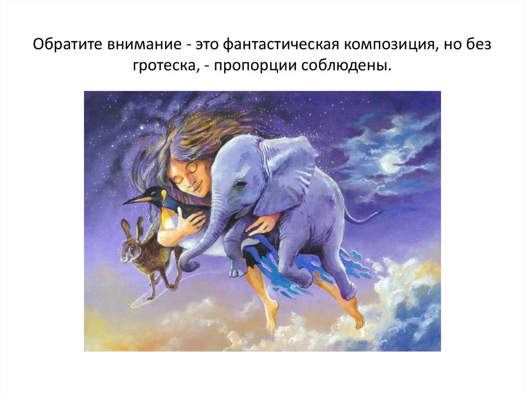 Обратите внимание - это фантастическая композиция, но безгротеска, - пропорции соблюдены.