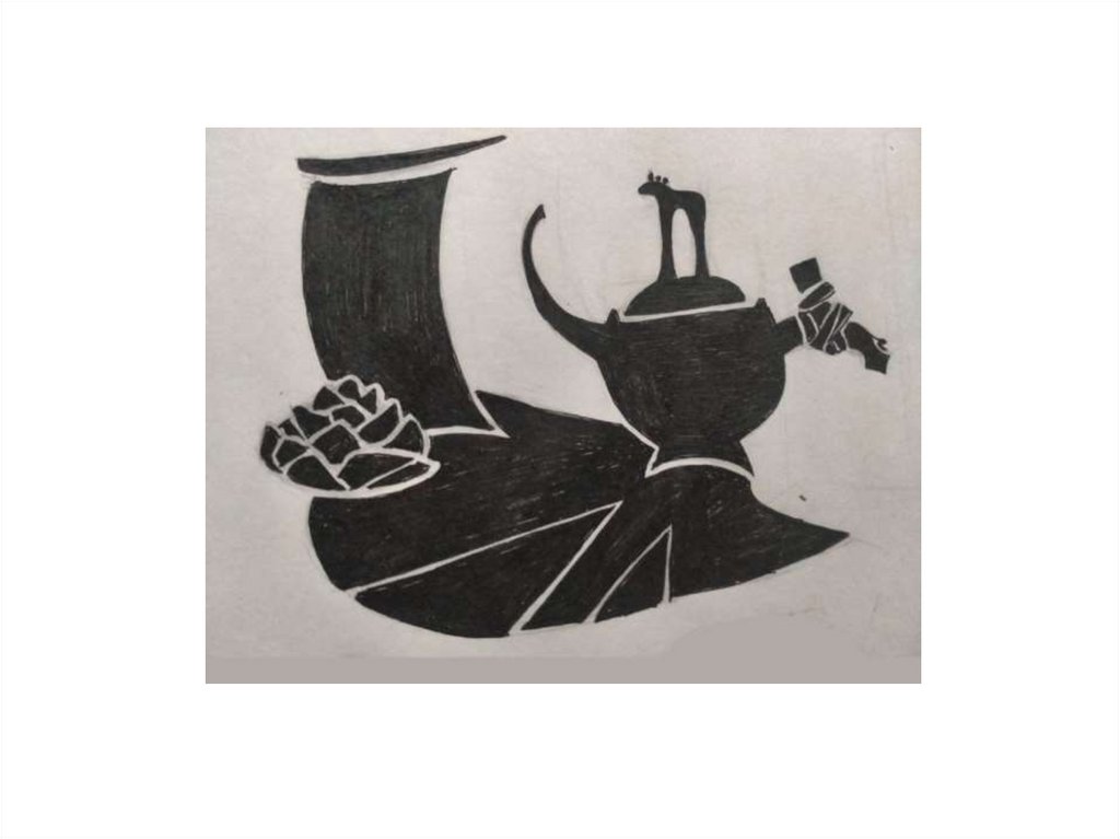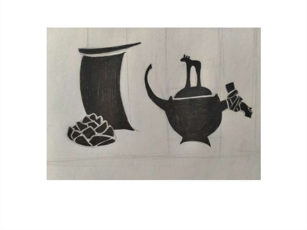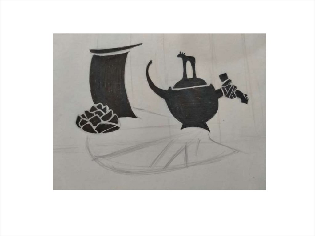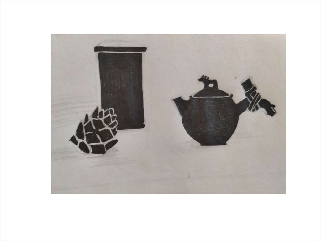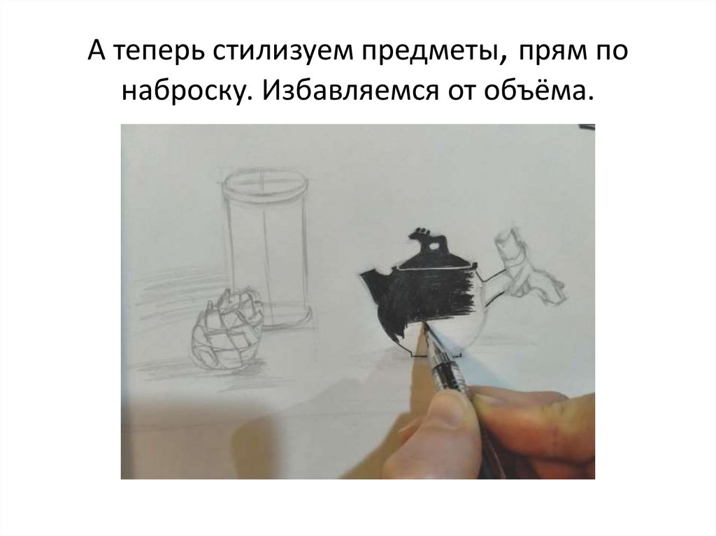 А теперь стилизуем предметы, прям понаброску. Избавляемся от объёма.