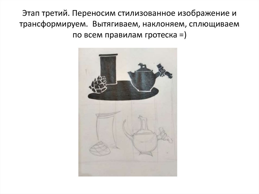Этап третий. Переносим стилизованное изображение итрансформируем. Вытягиваем, наклоняем, сплющиваем