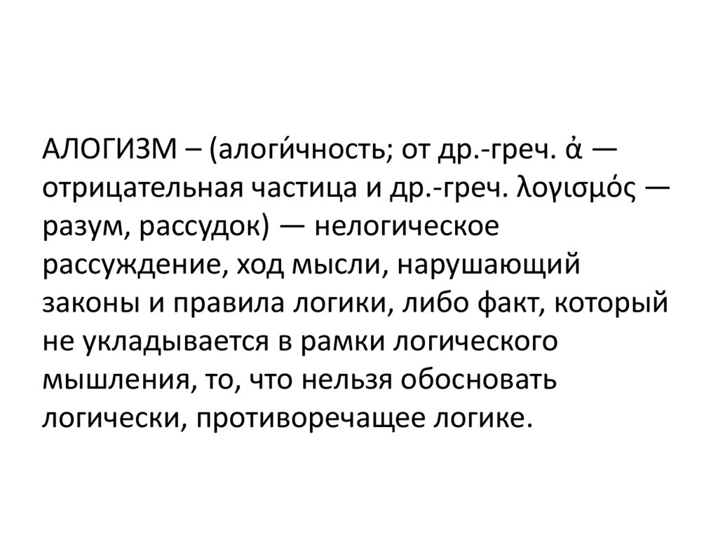 АЛОГИЗМ – (алоги́ чность; от др.-греч. ἀ —отрицательная частица и др.-греч. λογισμός —