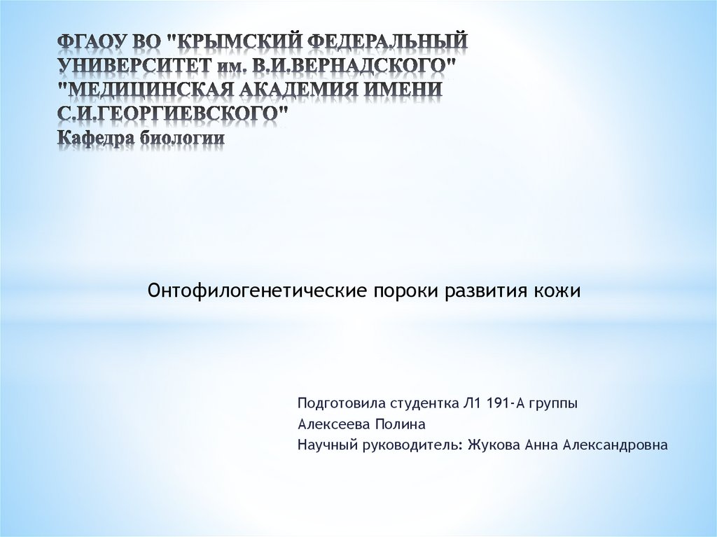 Онтофилогенетические пороки развития кожиПодготовила студентка Л1 191-А группы