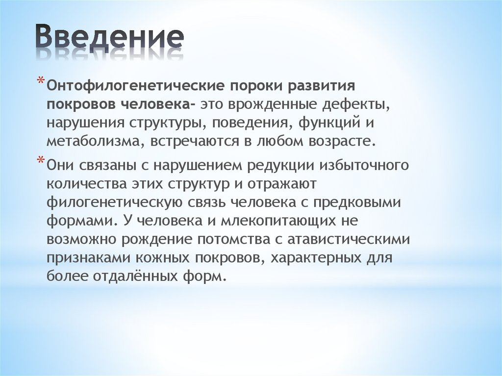 * Онтофилогенетические пороки развитияпокровов человека- это врожденные дефекты,