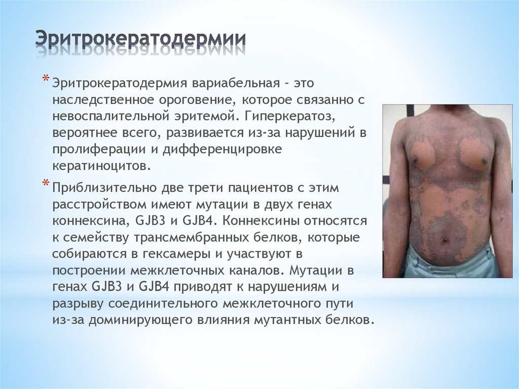 * Эритрокератодермия вариабельная – этонаследственное ороговение, которое связанно с