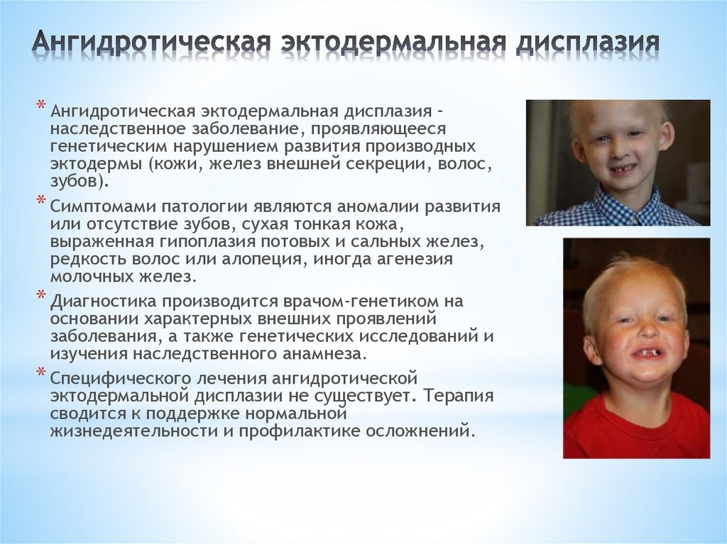 * Ангидротическая эктодермальная дисплазия –наследственное заболевание, проявляющееся