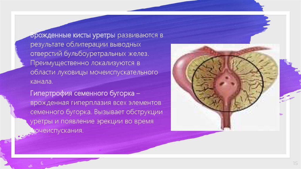 Врожденные кисты уретры развиваются врезультате облитерации выводных