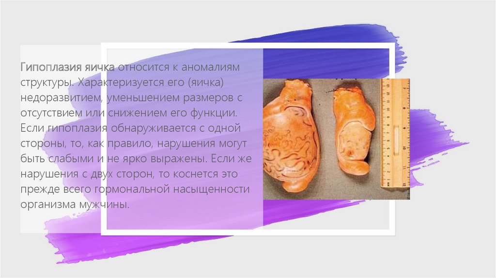 Гипоплазия яичка относится к аномалиямструктуры. Характеризуется его (яичка)