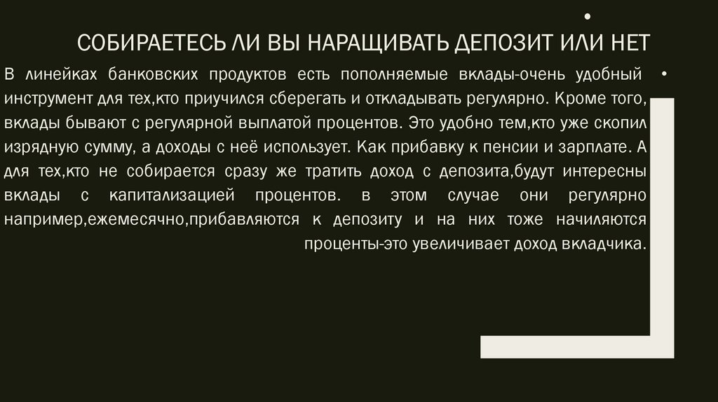 СОБИРАЕТЕСЬ ЛИ ВЫ НАРАЩИВАТЬ ДЕПОЗИТ ИЛИ НЕТ
